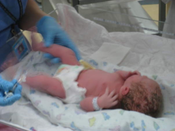 Krista seemed a little uncomfortable at first, but I'm told that everything moved along smoothly and it was a pretty simple birth overall.