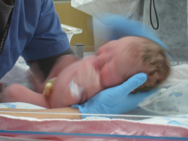 Krista seemed a little uncomfortable at first, but I'm told that everything moved along smoothly and it was a pretty simple birth overall.