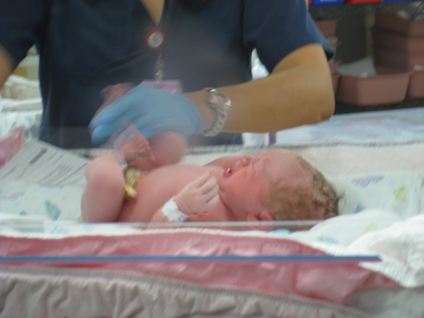 Krista seemed a little uncomfortable at first, but I'm told that everything moved along smoothly and it was a pretty simple birth overall.