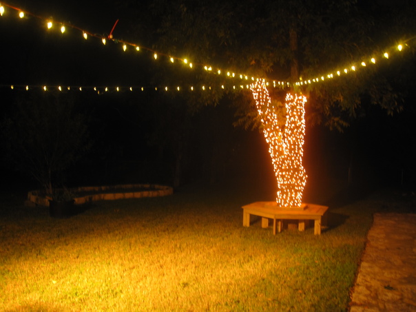 I've been working on a nice light arrangement for my upcoming backyard party. I just wanted to capture some intermediate shots to see how it comes along.