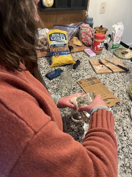 Meanwhile, Claire and I picked a huge bundle of Red Buds and Grape Hyacinth and used them to infuse a variety of vodkas.