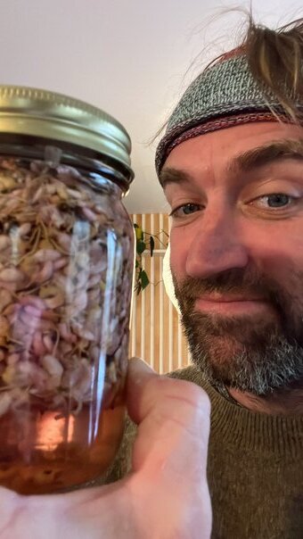 Meanwhile, Claire and I picked a huge bundle of Red Buds and Grape Hyacinth and used them to infuse a variety of vodkas.