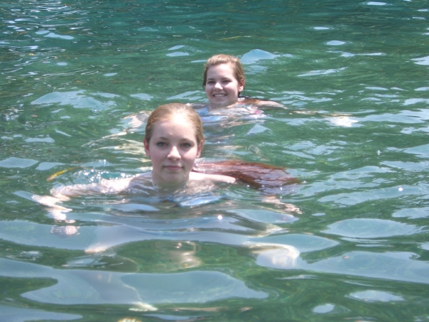 Girls take a dip in the lake to cool off from the summer sun.