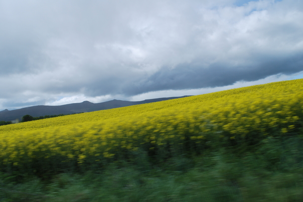 The backdrop of dark mountains against the wide spread of blooming yellow flowers is mind-blowing.