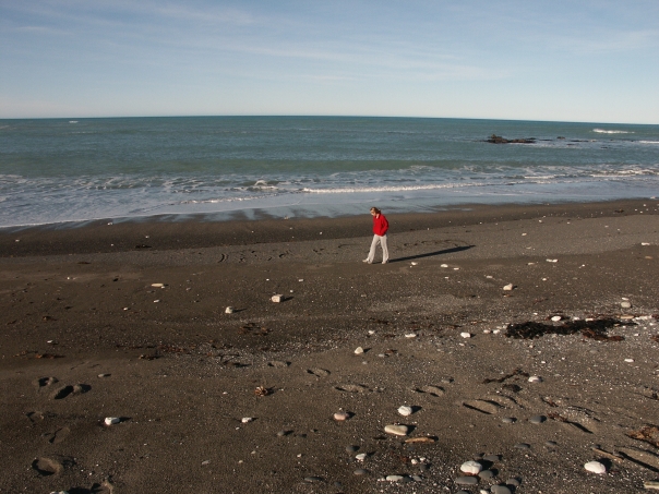 As we were driving, we just happened to come across the entrance to what appeared to be a black sand beach. I drove the camper van across some railroad tracks and up to the edge of the sand (as not to get stuck) and sure enough, a black sand beach.