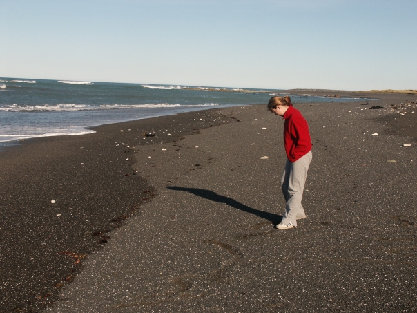As we were driving, we just happened to come across the entrance to what appeared to be a black sand beach. I drove the camper van across some railroad tracks and up to the edge of the sand (as not to get stuck) and sure enough, a black sand beach.