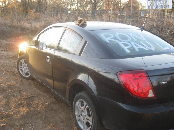 back car with writing on window
