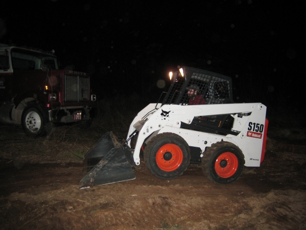 Two days before my Axel Lane new years eve party, I hired out a Bobcat S150 Skid Steer and got to working on flattening some more of my property with the help of Dave G.