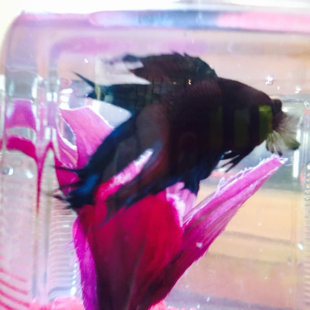 a small fish is swimming in the fish tank