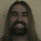 A small sepia picture of a person with a beard and long hair smiling for the camera.