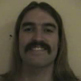 This is a picture of a man with long dark hair and a handlebar mustache.