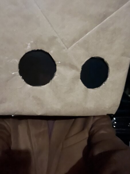 The hardest part was trying to figure out how to make the bag head stay firmly on top of my own head.