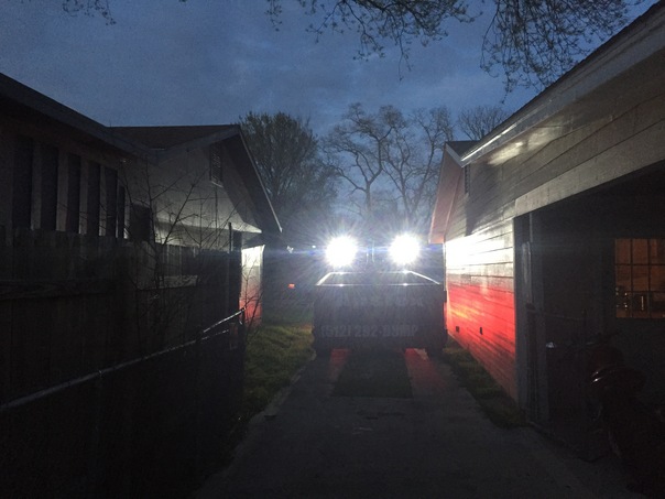 In an effort to have a much better stage setup at my house for the SXSW Broadmoor show, I recruited a few people to help tear down the old rape shacks on the premises.