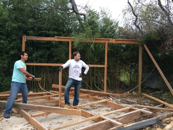 In an effort to have a much better stage setup at my house for the SXSW Broadmoor show, I recruited a few people to help tear down the old rape shacks on the premises.