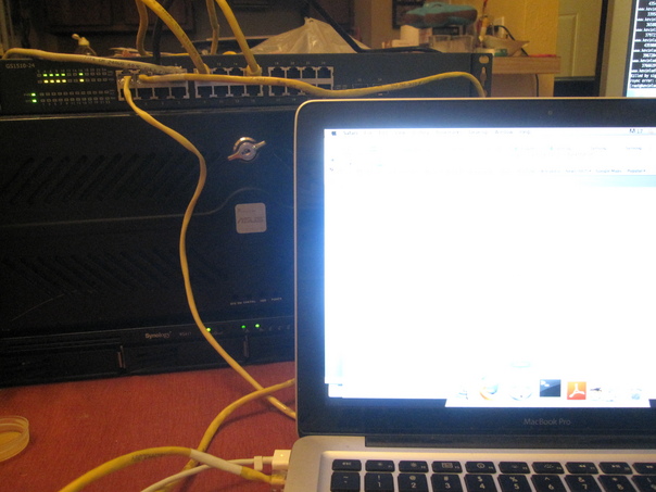 Some pictures that I shot of the Synology RS-411 that I purchased. I had to setup a secondary network at home to get the system working, and worst of all, the system failed after getting it all setup.
