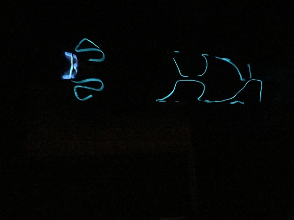 Determined to have a kickass costume at Carnaval this year, I purchased some mechanic coveralls, 45 feet of electroluminscent wire, and a big bag of batteries.