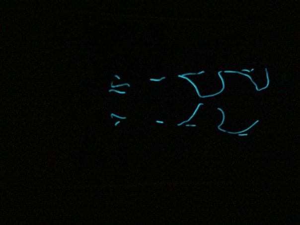 Thought we cannot tell exactly what this is due to the solid black background, there are areas of blue neon lights in the photo.