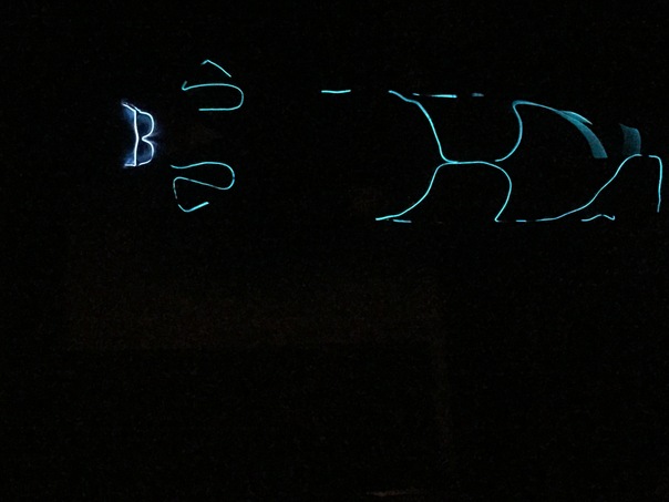 Determined to have a kickass costume at Carnaval this year, I purchased some mechanic coveralls, 45 feet of electroluminscent wire, and a big bag of batteries.