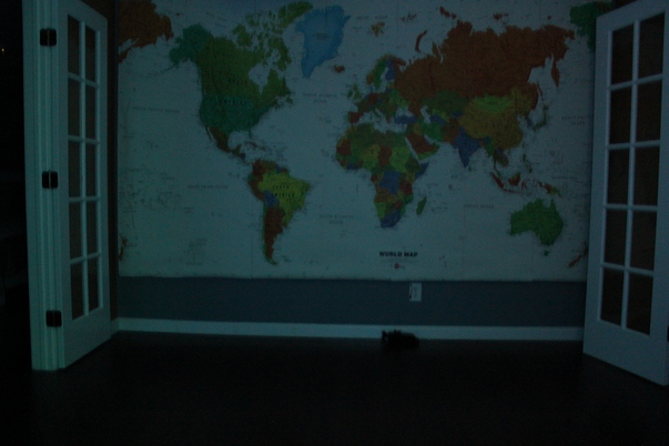 doors open up to wall with a map on it