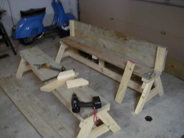 Another one of my many project for people was a picnic table that I made for one of Tisa's brothers, Kert. The Tyligo, as I dubbed it on account of the Greek roots, was a picnic table that sat on hinges and thus allowed for the table tops to fold down into two benches.