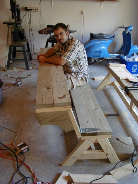 Another one of my many project for people was a picnic table that I made for one of Tisa's brothers, Kert. The Tyligo, as I dubbed it on account of the Greek roots, was a picnic table that sat on hinges and thus allowed for the table tops to fold down into two benches.