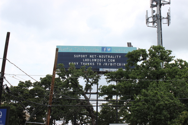 Ludlow2014 is thanking bitcoin on this billboard above the trees.