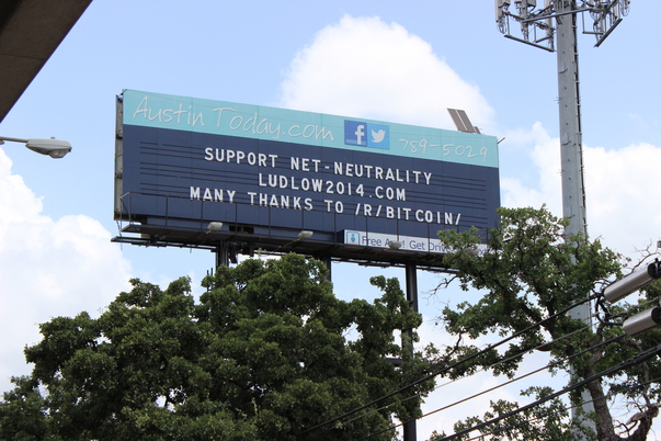 A billboard that says AustinToday.com with a message on a sunny day.