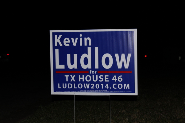 A political sign showing support for Kevin Ludlow as he runs for a seat in the Texas state government.