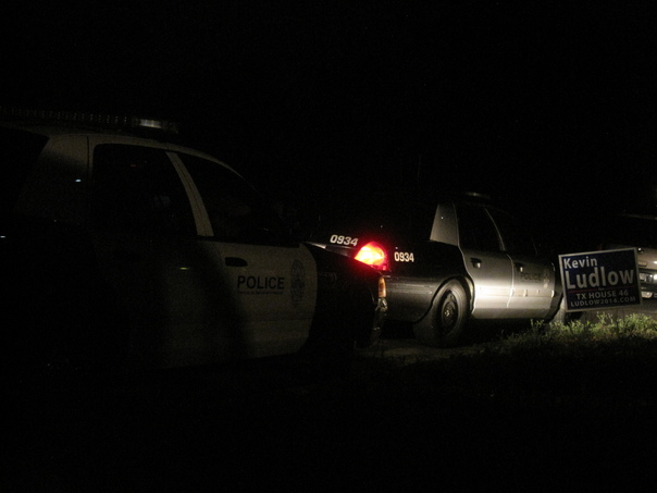 Two police car parked at the corner of the road near kevin ludlow |