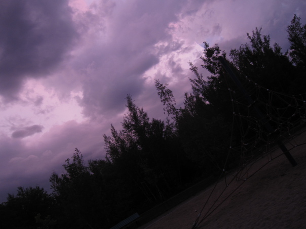 it is the dark time in the evening and black trees are seen