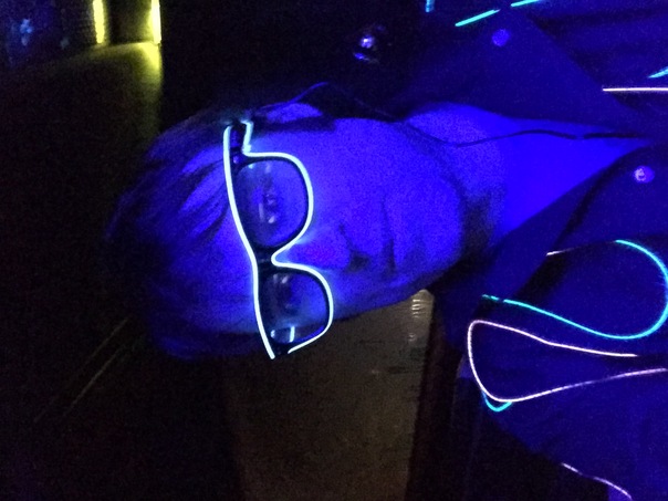 The young man has outlined his suit with neon lights so he stands out at the club.