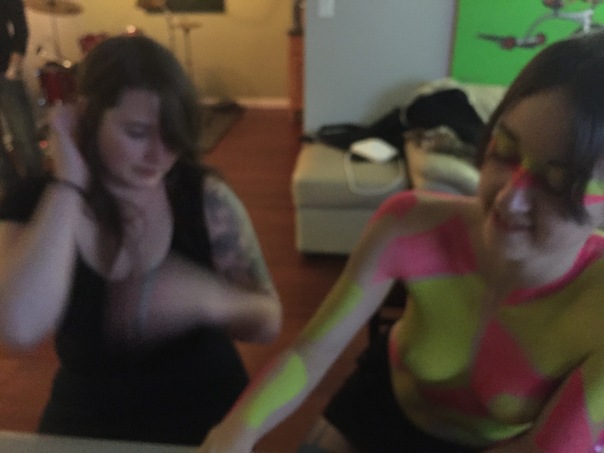 I invited a ton of people over and Claire being an artist and all helped paint Tara's body. My friend Jihan also came over and painted herself up too.