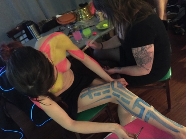 After building my EL-wire suit, Tara wanted to go all out and body paint herself.