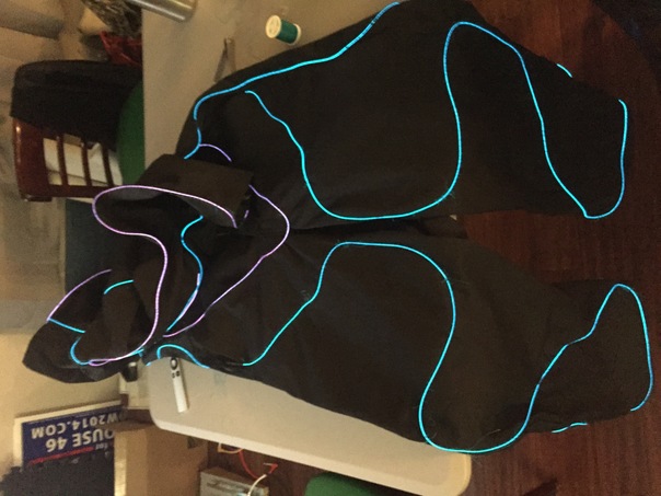 After building my EL-wire suit, Tara wanted to go all out and body paint herself.