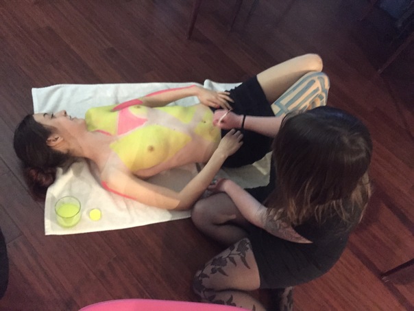 I invited a ton of people over and Claire being an artist and all helped paint Tara's body. My friend Jihan also came over and painted herself up too.