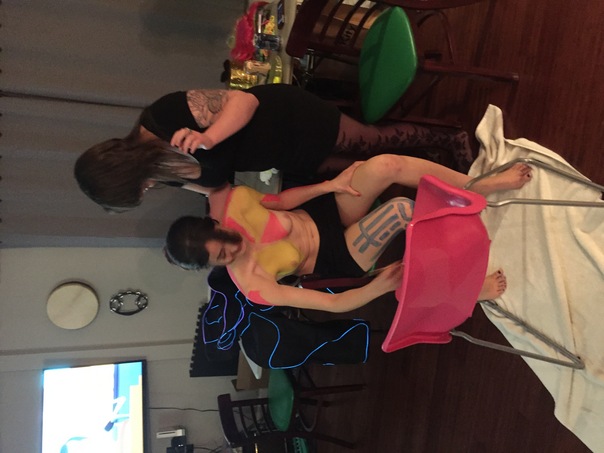 I invited a ton of people over and Claire being an artist and all helped paint Tara's body. My friend Jihan also came over and painted herself up too.