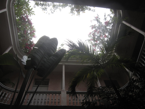 View towards the opening on a small courtyard in a plantation style building.