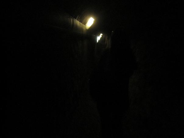 Only a couple of weak lights gave any illumination to the inky blackness. |