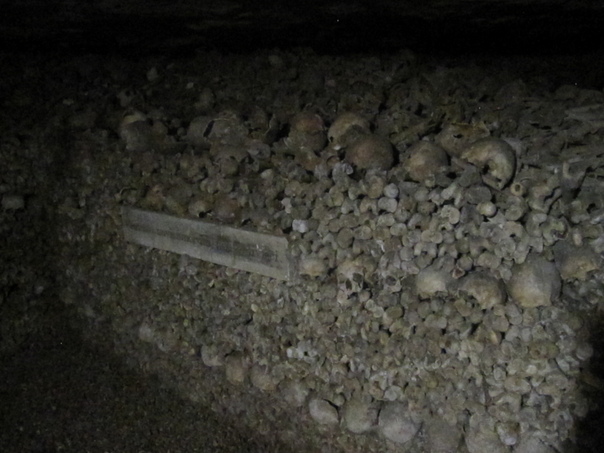 A wall of thousands of human bones stands out in the darkness, a stark testament to human mortality of the time. |