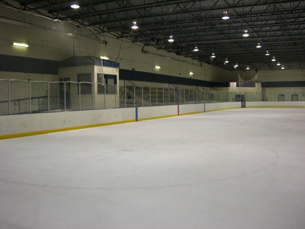 The ice rink had been cleaned in preparation for the skating party that afternoon.