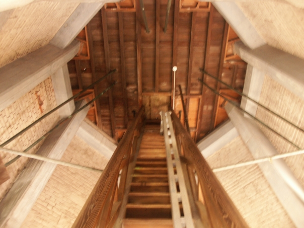 Looking up from the bottom of a very tall building.