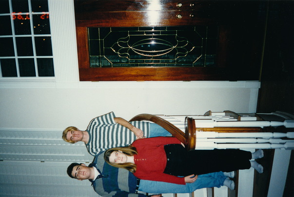 The young family stands on the stairs of the home they moved from 10 years ago. |