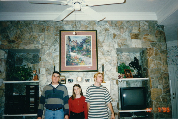 Man posing against a bare wall wearing a blue and gold jersey and holding an eagle trophy. |