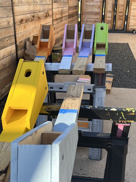 Since I'd spent a few weeks in January cutting down about a half an acre of scrub trees on her property for the purpose of highlighting the "real" trees, I thought it would be cool to build a set of these birdhouses.