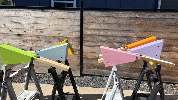 Since I'd spent a few weeks in January cutting down about a half an acre of scrub trees on her property for the purpose of highlighting the "real" trees, I thought it would be cool to build a set of these birdhouses.