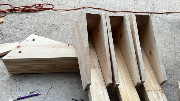 Since I'd spent a few weeks in January cutting down about a half an acre of scrub trees on her property for the purpose of highlighting the "real" trees, I thought it would be cool to build a set of these birdhouses.