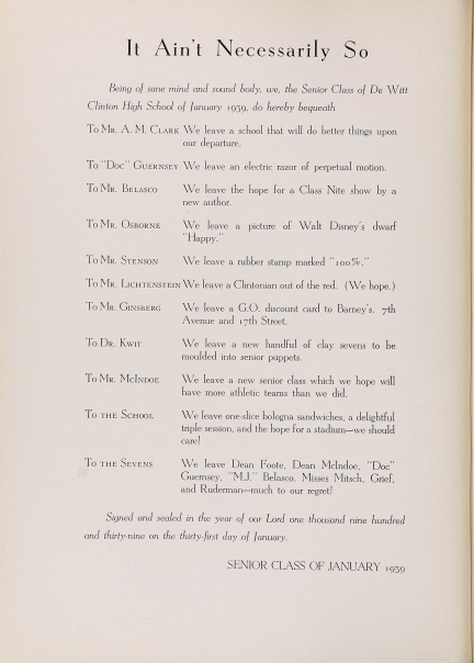 This is my grandfather's senior year yearbook from DeWitt Clinton High School back in 1939.