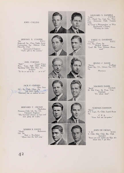 This is my grandfather's senior year yearbook from DeWitt Clinton High School back in 1939.
