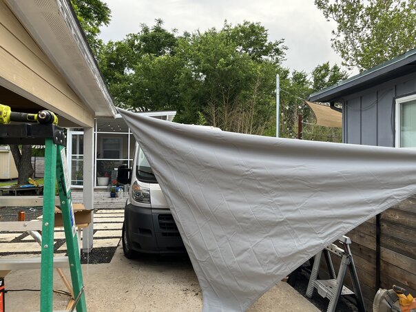 I've been wanting to hang sun shades around my backyard for a number of years now. Given that I purchased all of the steel cable crimping tools last summer so that I could hang the lights in my backyard, I figured that I finally had the tools and skills to make the shades a reality.
