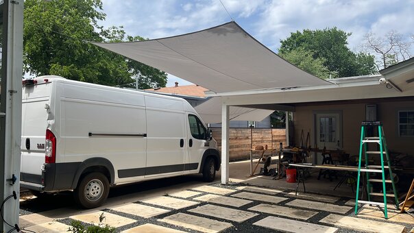 I've been wanting to hang sun shades around my backyard for a number of years now. Given that I purchased all of the steel cable crimping tools last summer so that I could hang the lights in my backyard, I figured that I finally had the tools and skills to make the shades a reality.